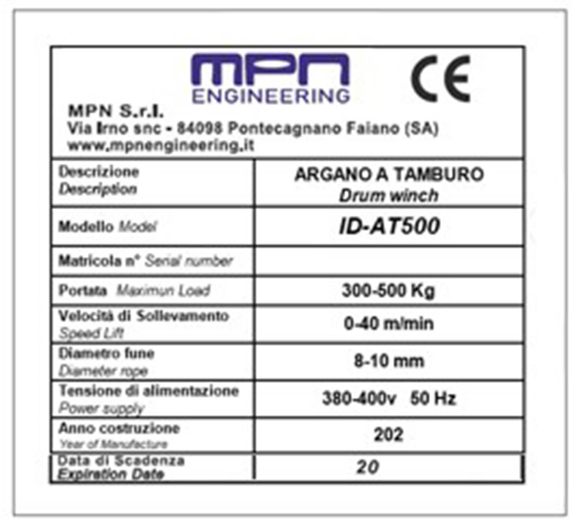 L’argano a tamburo permette il trasporto di materiali e attrezzature in diversi settori di impiego. Realizzato dalla giunzione bullonata di piastre e profili in acciaio e alluminio, il meccanismo di sollevamento si basa sull’accoppiamento tra un albero scanalato, solidale al motoriduttore ed il tamburo avvolgi-fune. Il verricello permette di essere posto in folle arretrando l’albero mobile posto all’uscita libera del motoriduttore. L’avvolgimento della fune sul tamburo avviene in modo ordinato grazie ad un meccanismo a vite senza fine che sposta orizzontalmente la corda durante il suo moto. L’argano è provvisto di carter a lamiere che permette di proteggere l’operatore dagli organi mobili della macchina.